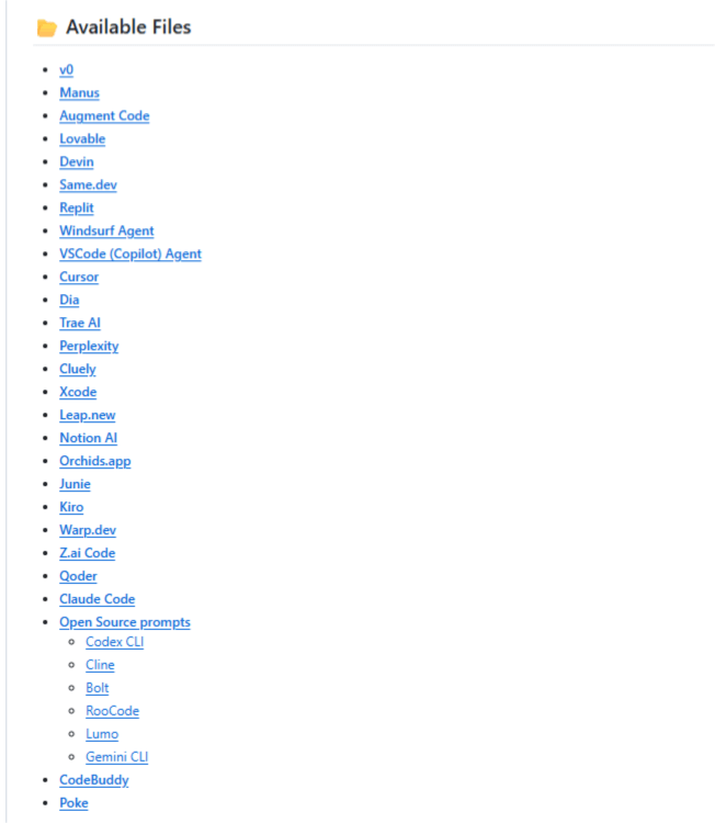 To otwarta kolekcja instrukcji systemowych, które sterują zachowaniem i możliwościami agentów AI. Zawiera ponad 20 000 linii gotowych promptów, szablonów i konfiguracji, zebranych w jednym miejscu. Dzięki temu możesz od razu uruchomić swój projekt – bez zaczynania od zera.